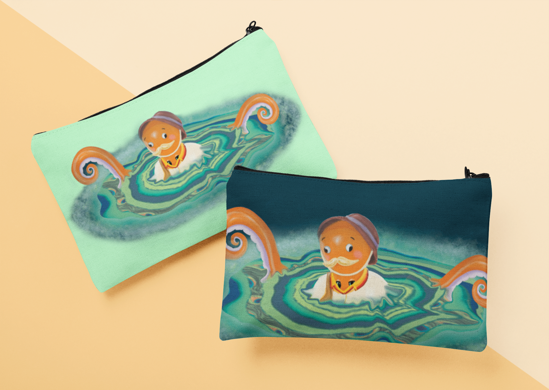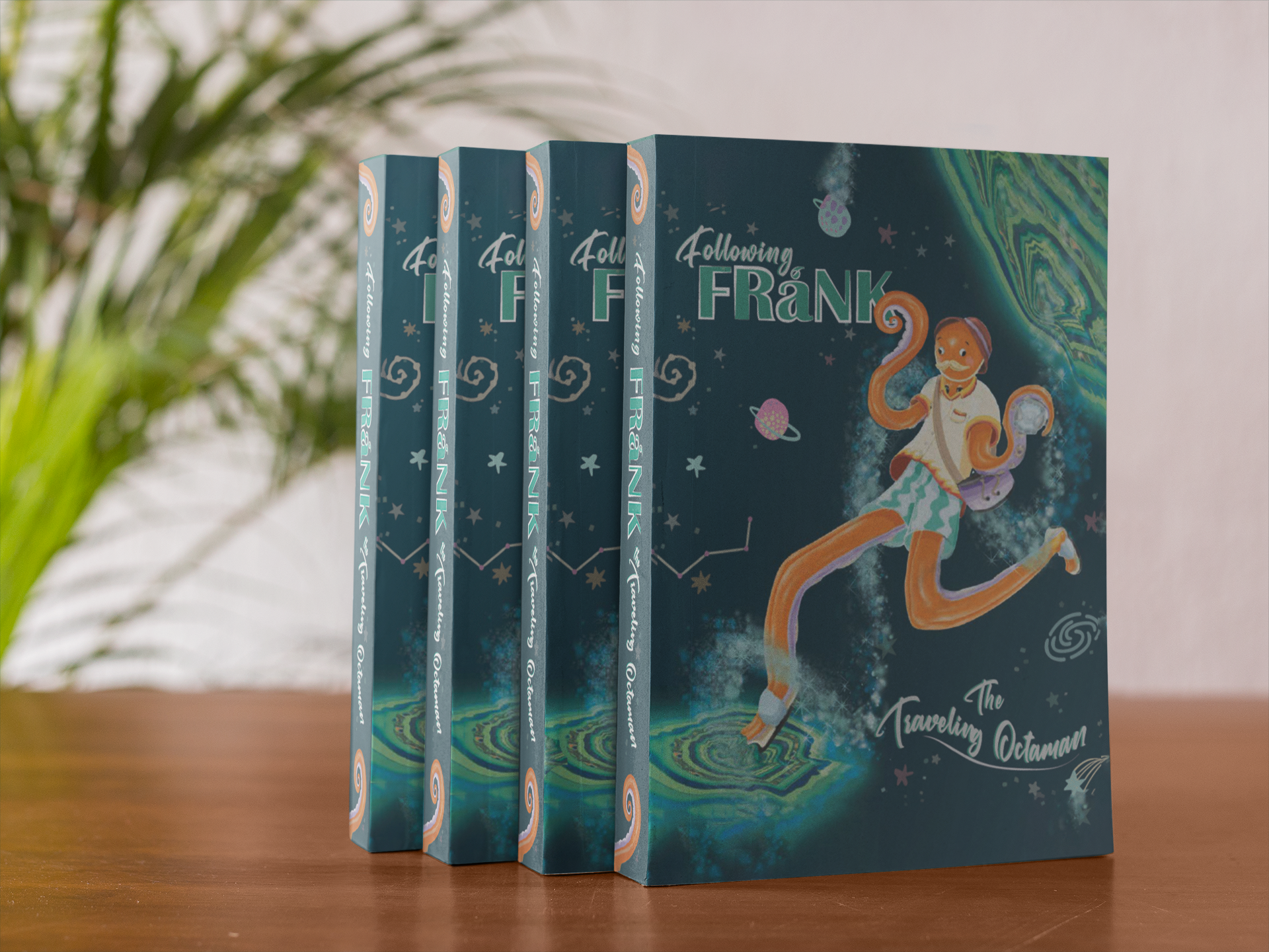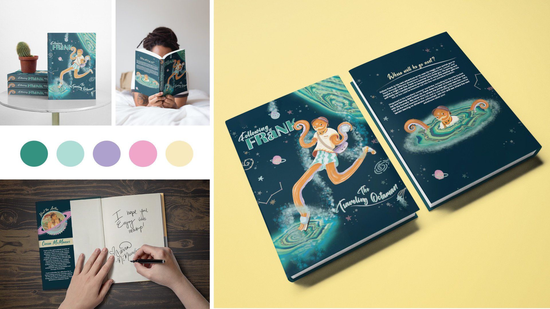 This project was created while pursuing my Digital Arts degree. I worked collaboratively with classmates to design an original character illustration & compelling backstory - Frank the Traveling Octaman was born. Frank is an interdimensional Octopus forever chasing summertime and warmer waters. He disguises himself to fit in with the humans by changing his skin color & outfits. He travels anywhere in the universe using his magic conch shell.