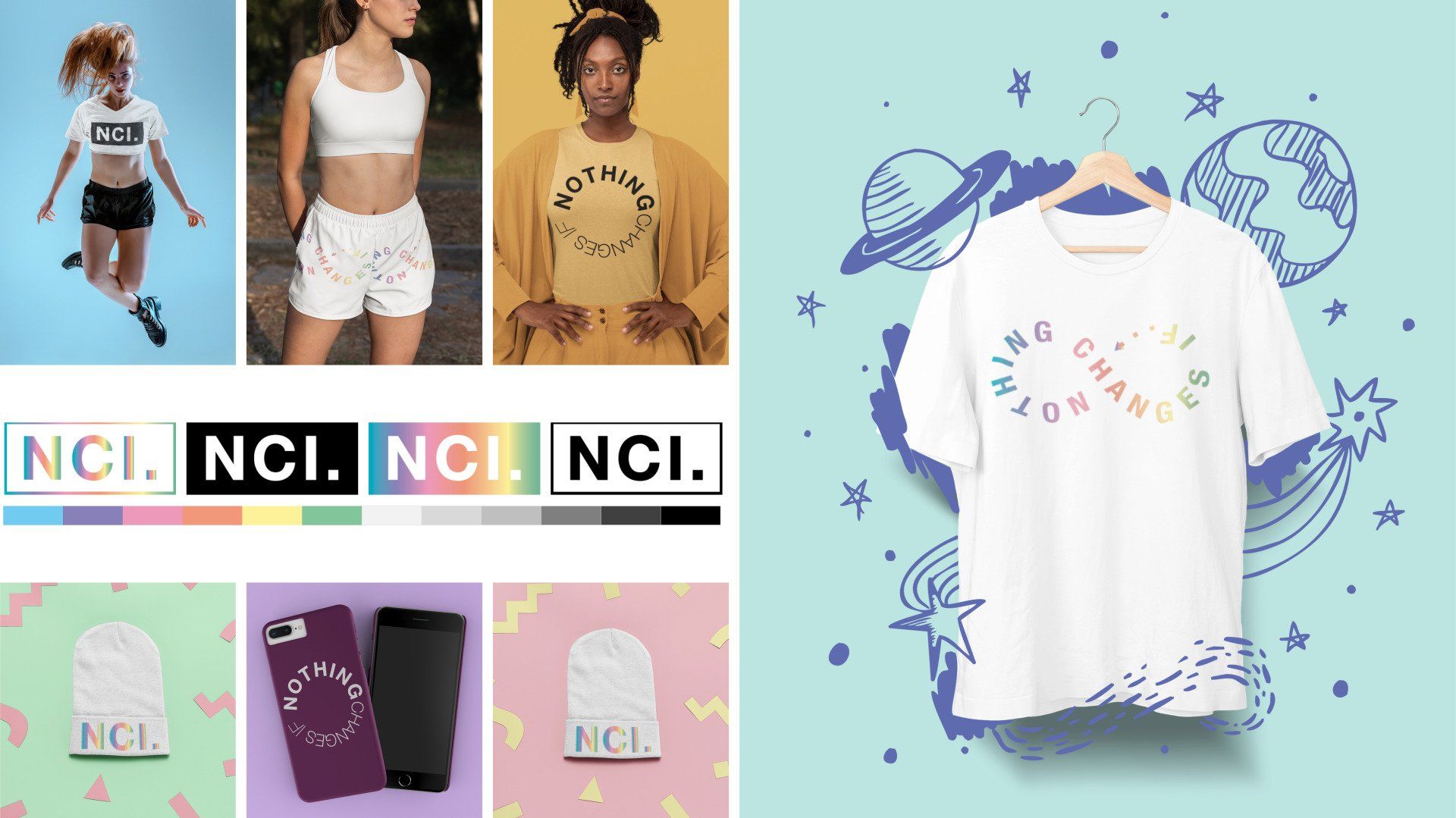 NCI: a fictional (faux) brand I created, it stands for “Nothing Changes, IF Nothing Changes” – a quote I found that really resonated with me. I used this phrase as the center of the brand identity, curating a Progressive, Inclusive & Active lifestyle company.