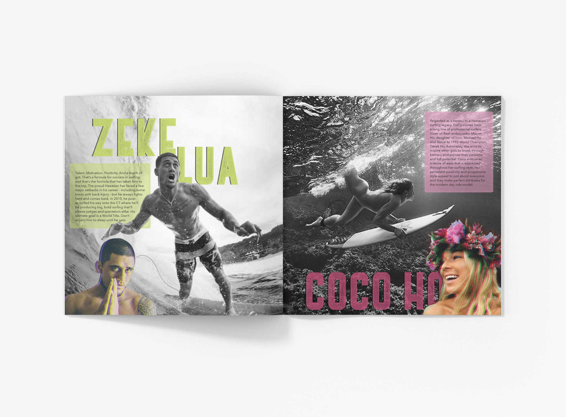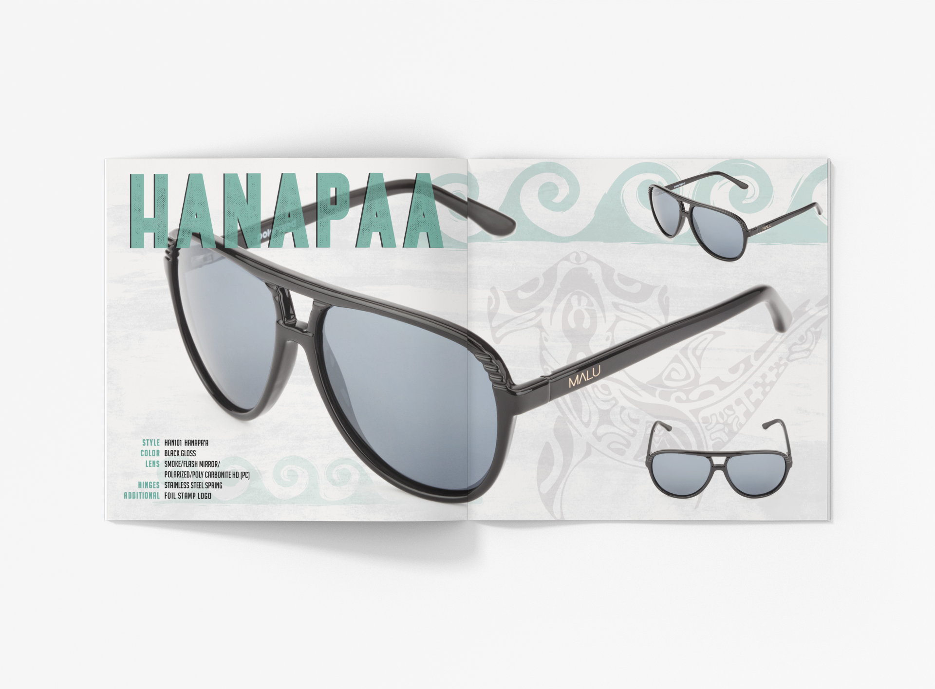 This was an exceptionally fun project completed while obtaining my Digital Arts degree. Our prompt was to create an original logo for a Hawaiian sunglass company and a product catalog. We were supplied the product images and responsibly for making a realistic looking catalog.